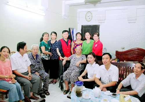 Tại gia đình Bà Nguyễn Thị Thận và gia đình Ông Bùi Bá Hải, các đ/c thường trực Hội Chữ thập đỏ phường Nguyễn Trãi đã cùng các đ/c lãnh đạo Hội Chữ thập đỏ quận Hà Đông, lãnh đạo phường Nguyễn Trãi trao tặng Bà Nguyễn Thị Thận và Ông Bùi Bá Hải mỗi người 1 chiếc xe lăn.