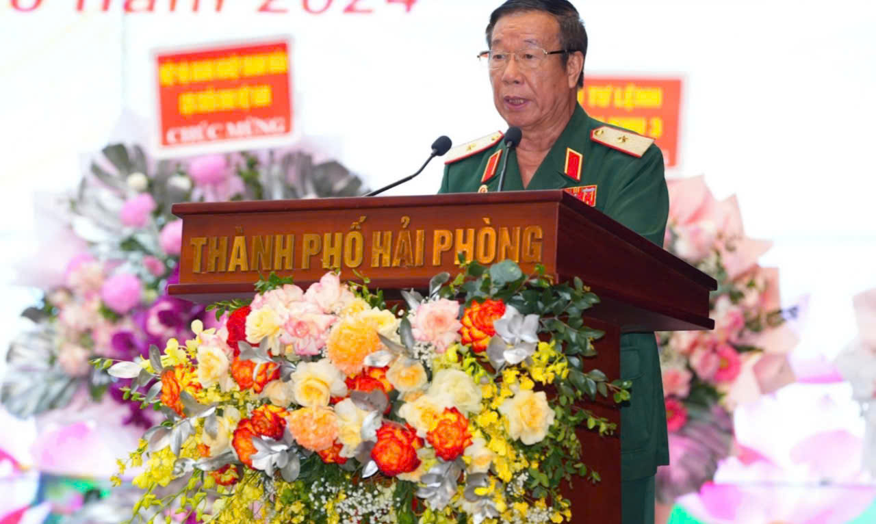 Thiếu tướng Lưu Xuân Cải - Chủ tịch Hội CCB TP.Hải Phòng phát biểu tại Đại hội