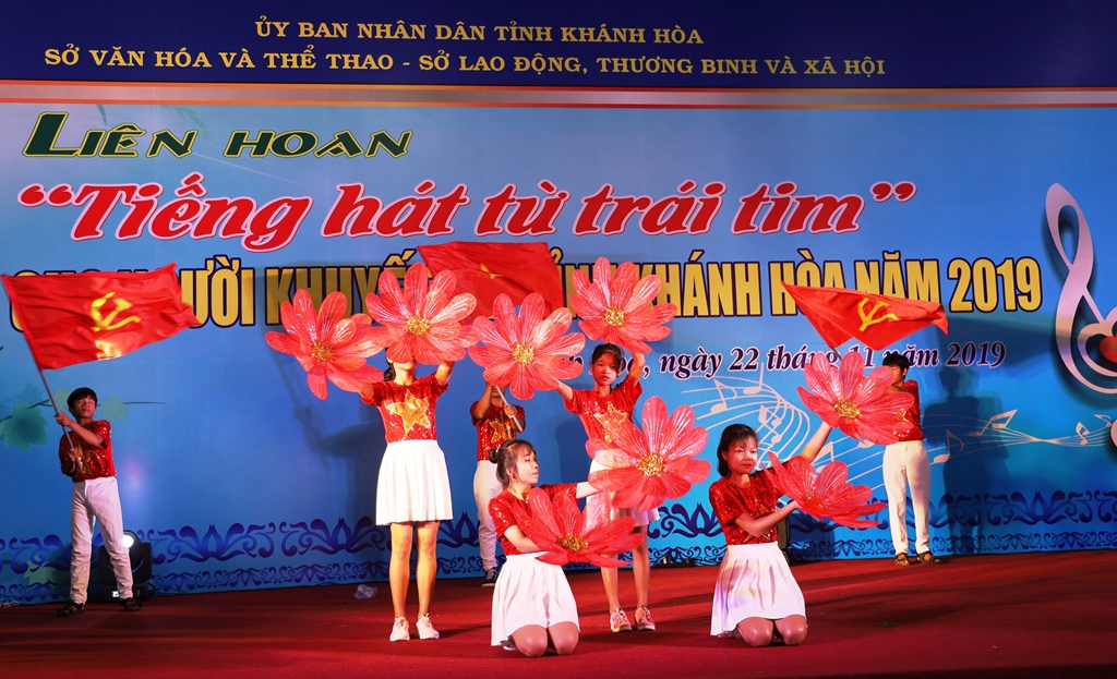 Tham dự hội diễn năm nay có 9 đoàn, 130 diễn viên là thành viên sinh hoạt các Hội và Trung tâm gồm: Hội Người mù TP. Cam Ranh, thị xã Ninh Hòa, TP. Nha Trang, huyện Vạn Ninh, huyện Khánh Vĩnh; Hội NKT Diên Khánh, Trung tâm Bảo trợ xã hội tỉnh; Trung tâm Phục hồi chức năng - Giáo dục trẻ em khuyết tật tỉnh… Các tiết mục dự thi phong phú, xoay quanh nhiều chủ đề về biển đảo quê hương, tình cảm gia đình, quê hương, đất nước, con người...
