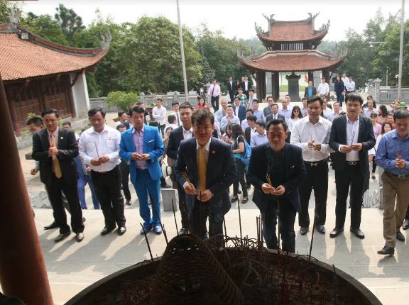 Đoàn đại biểu Hội Doanh nhân trẻ Việt Nam dâng hương tại đền thờ Đức Quốc tổ Lạc Long Quân