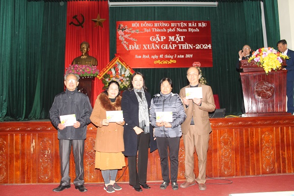 Tại hội nghị, ông Trần Minh Hải, Tỉnh ủy viên, Bí thư Huyện ủy Hải Hậu đã thông báo những thành tựu phát triển kinh tế xã hội nổi bật trong năm 2023 của huyện Hải Hậu, kết quả xây dựng nông thôn mới kiểu mẫu tại địa phương và những mục tiêu phấn đấu của huyện nhà trong năm 2024. Đồng thời biểu dương Hội đồng hương Hải Hậu tại thành phố Nam Định đang là một trong những tổ chức Hội hoạt động tốt nhất trên địa bàn cả nước. Bí thư huyện ủy Hải Hậu chúc mừng năm mới toàn thể cán bộ, hội viên và trao tặng Hội đồng hương Hải Hậu tại thành phố Nam Định lẵng hoa tươi thắm.
