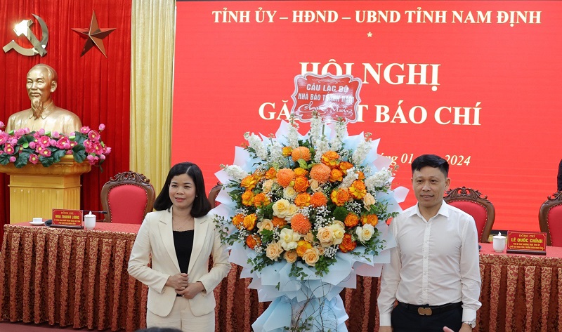 Câu lạc bộ Nhà báo Thành Nam tặng hoa chúc mừng Hội nghị Gặp mặt các cơ quan báo chí tại tỉnh Nam Định