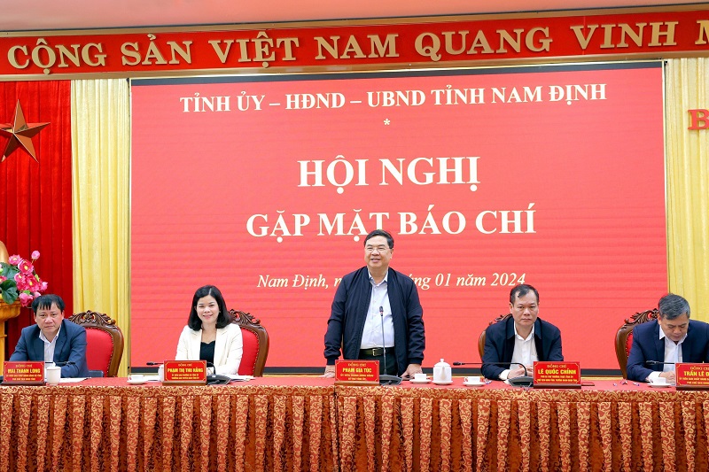 Phát biểu tại buổi gặp mặt, thay mặt lãnh đạo tỉnh, ông Phạm Gia Túc - Bí thư Tỉnh uỷ tính Nam Định gửi lời chúc mừng tốt đẹp nhất tới đội ngũ lãnh đạo, cán bộ, phóng viên, biên tập viên các cơ quan thông tấn, báo chí Trung ương, các cơ quan báo chí trong tỉnh nhân dịp đón Tết cổ truyền của dân tộc. Ông nhấn mạnh định hướng lãnh đạo, chỉ đạo, mục tiêu, động lực phát triển tỉnh thời gian tới; trong đó chú trọng công tác triển khai thực hiện các dự án trọng điểm, đầu tư xây dựng cơ sở hạ tầng giao thông kết nối; xúc tiến thu hút đầu tư từ các doanh nghiệp, tập đoàn công nghệ cao, thân thiện với môi trường để phát triển kinh tế - xã hội tỉnh, đóng góp lớn cho nguồn thu ngân sách của tỉnh và quốc gia. Quan tâm phát triển sự nghiệp văn hóa, bảo tồn di sản, phát triển kinh tế du lịch. Tập trung phát triển hợp lý nông nghiệp, chuyển dịch cơ cấu kinh tế cây trồng; phát triển các khu, cụm công nghiệp, thương mại, dịch vụ...