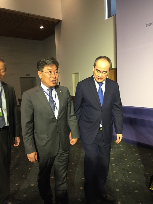 Chia sẻ công tác ứng phó với biến đổi khí hậu, Bí Thư Thành ủy Nguyễn Thiện Nhân cho biết, qua đánh giá các yếu tố gây ra biến đổi khí hậu, các nhà khoa học nhận định các yếu tố có tác động mạnh nhất đến Thành phố Hồ Chí Minh là nhiệt độ, lượng mưa và triều cường. Trong những năm qua, tình trạng nước biển dâng ngập lụt ở đô thị, xâm nhập mặn ngày càng sâu vào thượng nguồn đã và đang gây ảnh hưởng đến hoạt động sản xuất, nguồn cung cấp nước sạch, cơ sở hạ tầng và đời sống nhân dân thành phố. Trước thực trạng này, Thành phố Hồ Chí Minh đã sớm nhận thức được và đã có những chủ trương, chính sách tương ứng để ứng phó với biến đổi khí hậu ở nhiều mức độ và được lồng ghép vào nhiều lĩnh vực khác nhau như: quy hoạch, năng lượng, giao thông, xây dựng, quản lý chất thải, quản lý nước, nông nghiệp... Đây là cơ hội để Thành phố Hồ Chí Minh mở rộng hợp tác với các nước cũng đang phải đối mặt với vấn đề biến đổi khí hậu, trao đổi và chia sẻ kinh nghiệm, tìm những giải pháp hiệu quả nhất để ứng phó và thích nghi với biến đối khí hậu nhằm thúc đẩy phát triển kinh tế, đáp ứng được nhu cầu xã hội, đồng thời vẫn bảo vệ được môi trường, nguồn tài nguyên và sự phát triển bền vững cho các thế hệ mai sau.