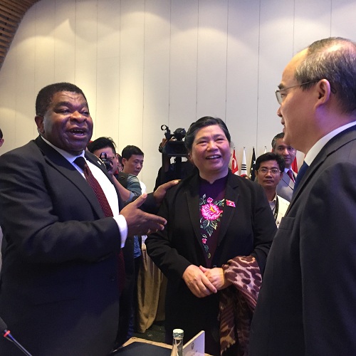 Các nhà lập pháp các nước tại Hội nghị cùng Chủ tịch Quốc Hội Việt Nam Nguyễn Thị Kim Ngân và Phó Chủ tịch Thường trực Quốc hội Tòng Thị Phóng trao đổi về biến đổi khí hậu