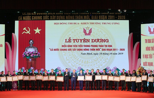 Trong khuôn khổ hội nghị, từ chiều ngày 18/10 đã diễn ra Lễ khai mạc Triển lãm thành tựu xây dựng NTM và Festival toàn quốc chương trình OCOP (mỗi xã một sản phẩm) tại quảng trường Trung tâm Văn hóa 3-2, thành phố Nam Định. Tối 18/10, đã diễn ra Lễ tuyên dương điển hình tiên tiến trong phong trào thi đua “Cả nước chung sức xây dựng NTM” giai đoạn 2011-2020. Tại lễ tuyên dương, Thủ tướng Chính phủ Nguyễn Xuân Phúc đã phát biểu chúc mừng, ghi nhận thành tích của các điển hình tiên tiến; trao tặng Huân chương Độc Lập hạng Ba cho hai tỉnh Nam Định, Đồng Nai; trao Huân chương Lao động hạng Nhất cho 19 đơn vị có thành tích xuất sắc và phát động phong trào thi đua “Cả nước chung sức xây dựng NTM giai đoạn 2021-2020”. Tại lễ tuyên dương, nhiều địa phương điển hình tiên tiến cấp tỉnh, cấp huyện, cấp xã trong cả nước cũng đã được các đồng chí lãnh đạo Đảng, Nhà nước, Chính phủ trao tặng Huân chương Lao động hạng Ba và Bằng khen của Thủ tướng Chính phủ. Trước đó, sáng 18/10/2019, các đại biểu về dự hội nghị đã đi tham quan thực tế một số mô hình tiêu biểu trong xây dựng NTM tại các huyện Lý Nhân (Hà Nam), Quỳnh Phụ (Thái Bình), Hải Hậu, Xuân Trường (Nam Định).