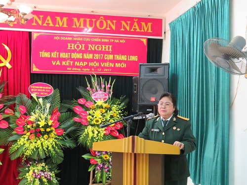 Thay mặt Hội DN TP Hà Nội, Bà Nguyễn Thị Mai - Chủ tịch Hội đã gửi lời chúc sức khỏe đến toàn bộ hội viên, đồng thời nhấn mạnh vai trò và hoạt động của hội. Đặc biệt là công tác phối hợp giữa các chi hội trong cụm, giữa các cụm với nhau, với hội CCB các cấp; cùng hỗ trợ, giúp đỡ lẫn nhau trong công việc, thực hiện liên doanh liên kết trong kinh doanh, tham gia tích cực vào các phong trào của địa phương cũng như công tác từ thiện nhân đạo... Bà cũng mong muốn Hội DNCCB TP Hà Nội ngày càng phát triển vững mạnh hơn nữa cả về số lượng và chất lượng.