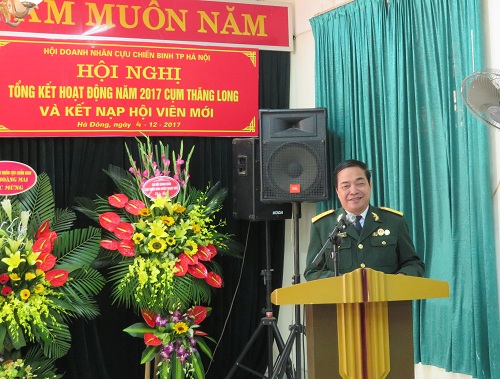 Phát biểu tại Hội nghị Đồng chí Nguyễn Văn Thốn - PCT Hội DNCCB TP Hà Nội, Chi hội trưởng Chi hội CCB quận Hà Đông đã tổng kết hoạt động của cụm Thăng Long trong năm 2017. Doanh nhân CCB cụm Thăng Long gồm 5 chi hội: CH Tây Hồ, CH Cầu Giấy, CH Đống Đa, CH Hoàn Kiếm và CH Hà Đông. Dưới sự lãnh đạo của hội DN TP Hà Nội, trong những năm qua, DNCCB cụm Thăng Long đã không ngừng lớn mạnh cả về số lượng và chất lượng. Doanh thu năm 2017 cụm đạt 1392 tỷ đồng. Nộp ngân sách cho nhà nước đạt 26 tỷ đồng. Sử dụng trên 5000 lao động với mức lương từ 5 - 8 triệu đồng/ người/ tháng. Đảm bảo chế độ chính sách nhà nước quy định cho người lao động. Đặc biệt công tác từ thiện xã hội cũng được cụm hết sức quan tâm. Cụm đã tiến hành tặng hàng trăm suất quà cho các đồng chí thương binh và nạn nhân chất độc da cam, ủng hộ xây nhà tình nghĩa, ủng hộ đồng bào bão lụt... với tổng số tiền là 5 tỷ đồng. Đồng thời nêu phương hướng trọng tâm trong hoạt động của hội năm 2018 là tiếp tục đẩy mạnh phong trào “ Học tập làm theo tư tưởng đạo đức, phong cách Chủ tịch Hồ Chí Minh”; phát huy truyền thống “Anh bộ đội Cụ Hồ” trong thời bình; đoàn kết, đổi mới xây dựng cụm vững mạnh về mọi mặt; tích cực tham gia phong trào nhân đạo, từ thiện xã hội.