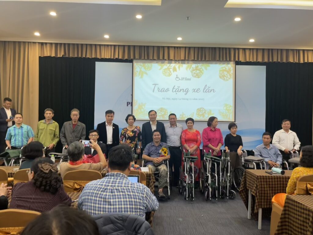 (Hội đã vận động nguồn kinh phí từ các mạnh thường quân trao tặng 15 xe lăn cho các hội viên của Hội Người khuyết tật TP. Hà Nội. Ảnh: ĐHVO)
