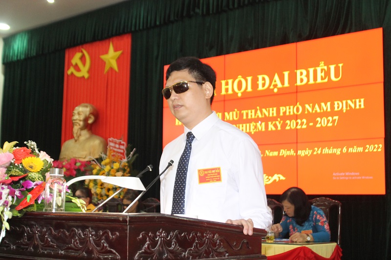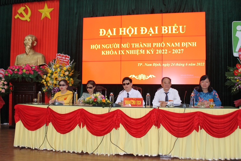 Sáng 24-6-2022, Hội Người mù thành phố Nam Định (tỉnh Nam Định) đã tổ chức đại hội nhiệm kỳ, tổng kết hoạt động công tác Hội khóa VIII nhiệm kỳ 2017-2022, đề ra phương hướng nhiệm vụ khóa IX nhiệm kỳ 2022-2027. Dự đại hội có ông Trần Xuân Dương, Ủy viên BCH Trung ương Hội Người mù Việt Nam, Chủ tịch Hội Người mù tỉnh Nam Định; bà Nguyễn Thị Như, Phó Chủ tịch Thường trực UBND thành phố Nam Định; đại diện lãnh đạo một số cơ quan chức năng của thành phố Nam Định, đại diện Hội Người mù các huyện trên địa bàn tỉnh Nam Định; đại diện “tấm lòng vàng” cùng 51 đại biểu của Hội Người mù thành phố Nam Định.