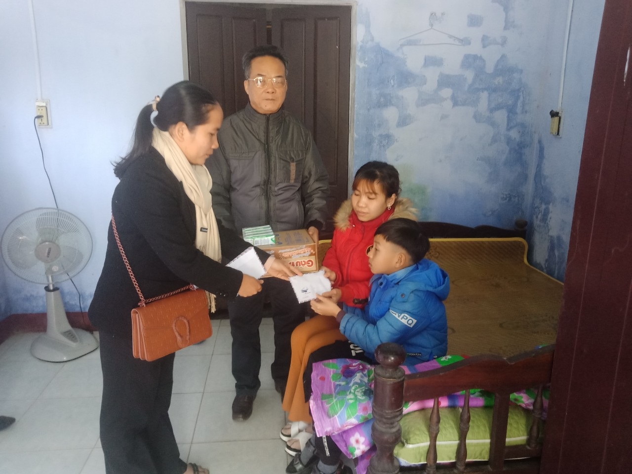 Ông Lê Văn Lộc - Chủ tịch Hội Người mù Thừa Thiên Huế tới thăm và tặng quà cho các cháu mù-đa tật