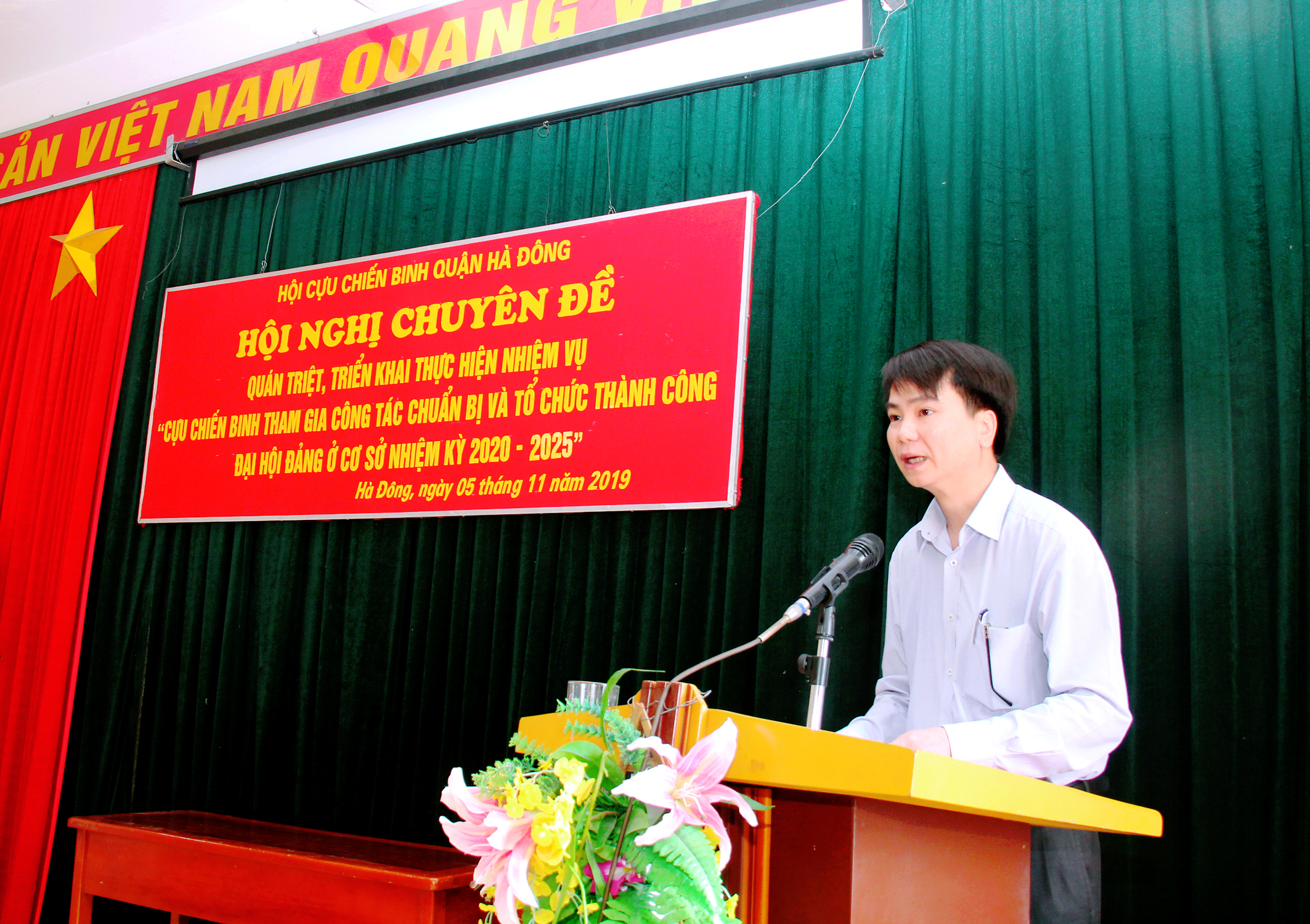 Tại Hội nghị, đ/c Nguyễn Tiến Quyết, Ủy viên thường vụ - Trưởng ban tổ chức Quận ủy đã quán triệt chỉ thị triệt Chỉ thị số 35-CT/TW của Bộ Chính trị, Kế hoạch số 155-KH/TU của Thành ủy về “Tổ chức đại hội đảng bộ các cấp tiến tới Đại hội đại biểu lần thứ XVII Đảng bộ thành phố Hà Nội” và Kế hoạch số 256-KH/QU, ngày 06/8/2019 của Quận ủy Hà Đông về “Tổ chức Đại hội Đảng bộ, chi bộ cơ sở tiến tới Đại hội đại biểu lần thứ XXI Đảng bộ quận Hà Đông". Đ/c đặc biệt nhấn mạnh vai trò, vị trí của cán bộ, hội viên Hội CCB tại cơ sở trong việc phát huy truyền thống “Bộ đội Cụ Hồ”, nêu cao bản chất của Hội CCB Việt Nam: “Trung thành, Đoàn kết, Gương mẫu, Đổi mới” tích cực nêu cao trách nhiệm tham gia vào tiến trình Đại hội Đảng từ cơ sở, góp phần cho sự thành công của Đại Hội Đảng các cấp nhiệm kỳ 2020 - 2025.