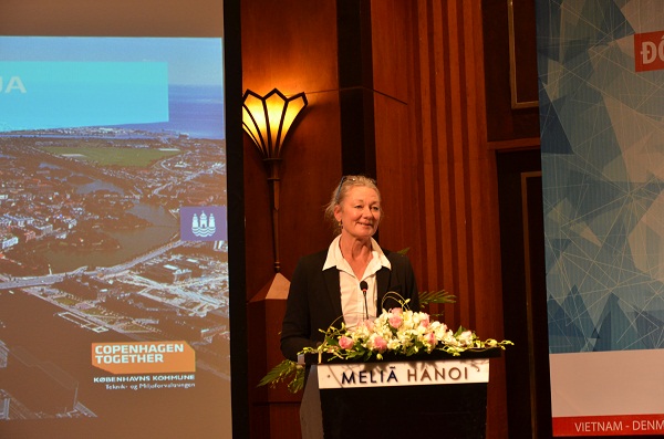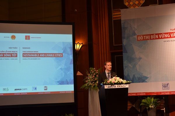 Ngài Bo Mønsted, Tham tán Đại sứ quán nhấn mạnh trong bài phát biểu khai mạc hội thảo: “Theo một thống kê gần đây được công bố bởi Diễn đàn Hợp tác cấp cao vì mục tiêu xanh toàn cầu 2030 (P4G), đô thị chỉ chiếm 3% tổng diện tích toàn hành tinh nhưng lại tiêu thụ tới 60% mức năng lượng, sản sinh ra 70% lượng phát thải khí nhà kính và 70% tổng lượng chất thải. Việc gia tăng đô thị hóa được dự đoán sẽ kéo theo nhu cầu đối với các giải pháp bền vững mới, đặc biệt đối với các nước đang phát triển như Việt Nam. Đan Mạch là đất nước dày dặn kinh nghiệm trong việc giải quyết các thách thức này và hiện được nhắc tới như quốc gia dẫn đầu thế giới trong mảng công nghệ xanh. Do đó, tôi tin tưởng rằng Đan Mạch có khả năng hỗ trợ các thành phố lớn như Hà Nội hay Tp. Hồ Chí Minh tìm ra các giải pháp bền vững mới, cải thiện chất lượng sống cho người dân đô thị”.