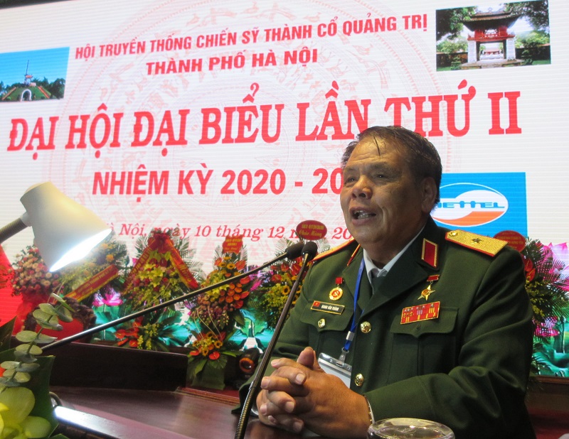 Phát biểu tại đại hội, Trung tướng Vũ Văn Kiểu, Chủ tịch Hội nhiệm kỳ 2015-2020, nhấn mạnh: “Đóng góp vào chiến công chung bảo vệ Thành cổ Quảng Trị năm 1972 có hàng vạn con em Thủ đô Hà Nội đã lên đường chiến đấu với khẩu hiệu: “Tất cả để đánh thắng giặc Mỹ xâm lược”. Đặc biệt tháng 6/1971 có một trung đoàn được thành lập giữa lòng Thủ đô gồm toàn sinh viên nhập ngũ từ các trường đại học, trường cao đẳng bổ sung vào Quảng Trị tham gia chiến dịch bảo vệ thị xã và Thành cổ Quảng Trị 81 ngày đêm. Họ đã hoàn thành xuất sắc nhiệm vụ, nhiều đồng chí sau này trở thành những sĩ quan cấp tướng trong quân đội, công an và cán bộ cao cấp của Đảng và Nhà nước. Thắng lợi thật huy hoàng, nhưng cũng nhiều đau thương mất mát. Máu xương hàng vạn chiến sĩ đã đổ xuống và hàng ngàn đồng đội đã nằm lại vĩnh viễn trên chiến trường. Trong đó Hà Nội và Hà Tây (cũ) có trên 500 liệt sĩ hy sinh trong chiến dịch 81 ngày đêm. Một sự đau thương vô hạn. Điều đó làm chúng ta luôn luôn đau đáu sống có nghĩa tình và phải biết tri ân, làm cho mọi người gần gũi, giúp đỡ nhau trong cuộc sống. Chúng ta cần nêu cao hơn nữa vai trò gương mẫu đi đầu trong thực hiện các chủ trương, chính sách của Đảng và Nhà nước, đóng góp tích cực vào nhiệm vụ xây dựng Thủ đô văn minh, giàu đẹp!".