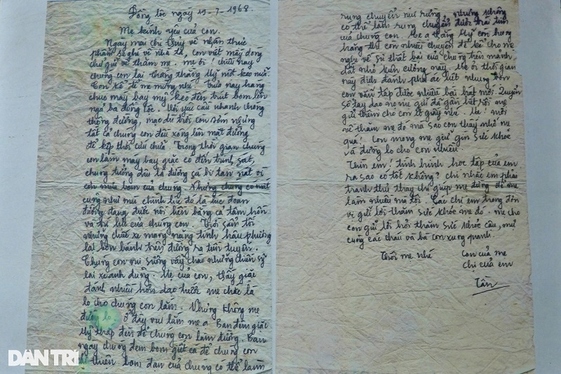 Đây là một bức thư đặc biệt khi đó là bức thư cuối cùng của một nữ “Thanh niên xung phong” gửi cho mẹ, vì đâu ai ngờ rằng chỉ 5 ngày sau, chị và 9 đồng đội của mình đã anh dũng hy sinh ở Ngã ba Đồng Lộc. Bức thư gửi mẹ được chị Võ Thị Tần, Tiểu đội trưởng Tiểu đội 4, Đại đội 552 Thanh niên xung phong Hà Tĩnh viết ngày 19/07/1968. Bức thư hiện đang được lưu giữ tại Bảo tàng Phụ nữ Việt Nam.