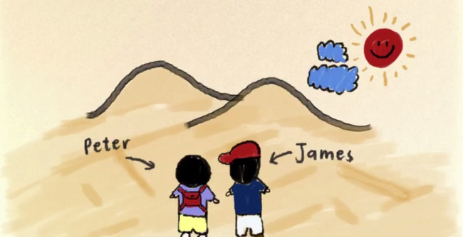 Một ngày nọ, James và Peter quyết định đi du lịch bụi để trải nghiệm. Hai người họ phải băng qua sa mạc bỏng rát, khô cằn bằng chính đôi chân của mình.