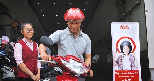 | Niềm vui của khách hàng mua được xe máy bằng khoản cho vay trả góp của Công ty Home Credit Việt Nam. |