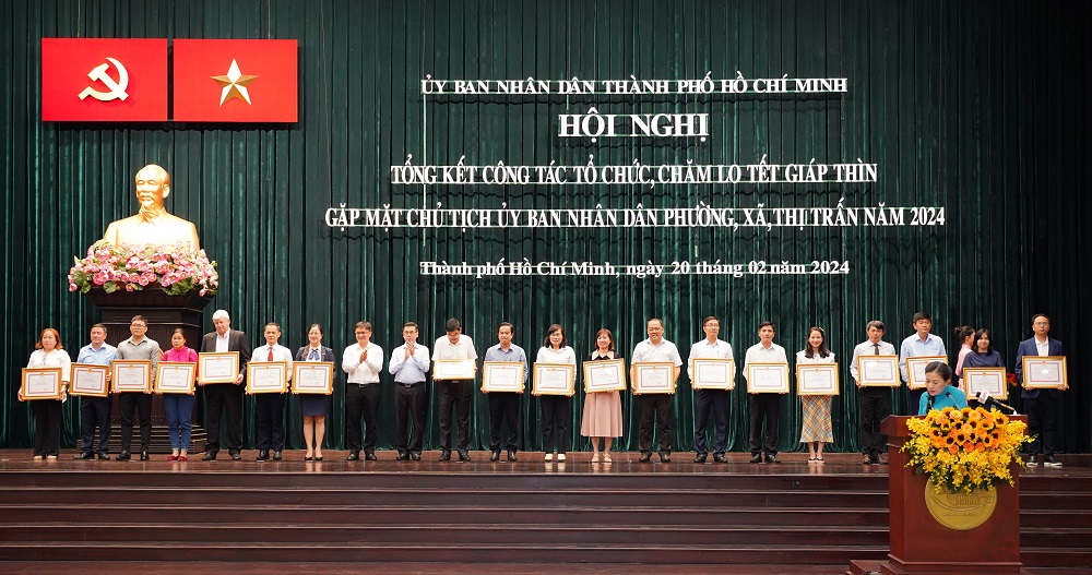 Dịp này, UBND TP Hồ Chí Minh thống nhất tặng Bằng khen cho các 302 tập thể triển khai hiệu quả công tác chăm lo Tết Giáp Thìn 2024 và 53 cá nhân là Chủ tịch phường, xã, thị trấn đã có thành tích xuất sắc năm 2023.