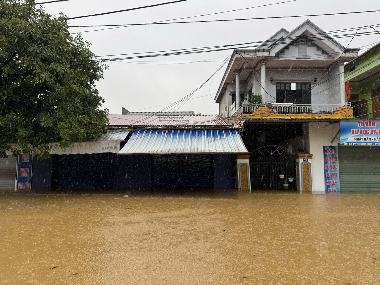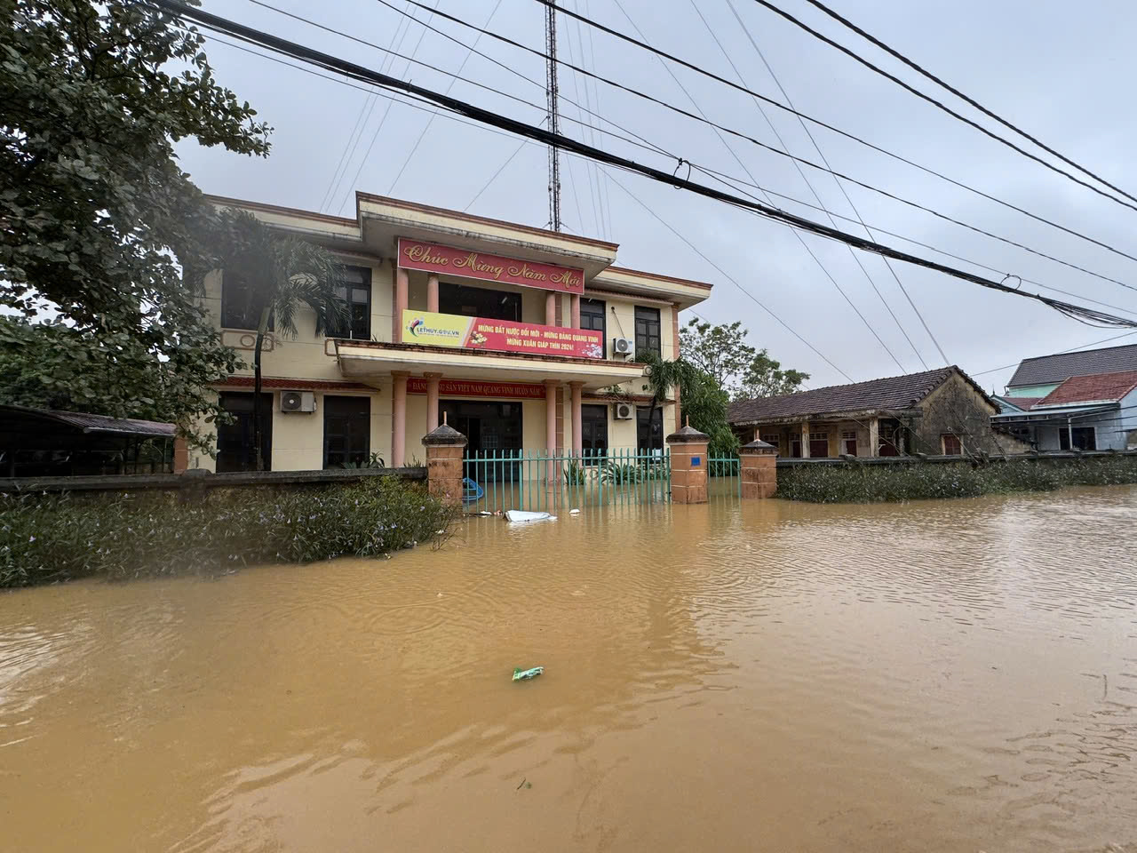 Hiện tại nước vẫn đang cao, khu vực thấp nước ngập sâu 3m hoặc hơn, mưa và gió làm sóng dập nhiều, đi lại khó khăn.