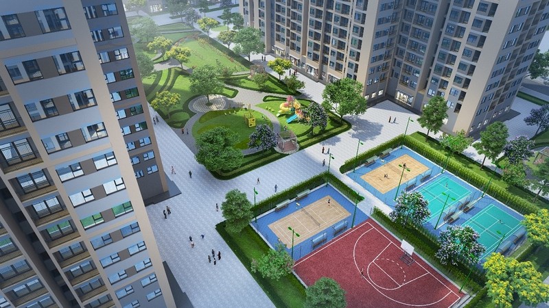 Tòa Park 06 nằm kế cận công viên nội khu có nhiều cây xanh, sân chơi trẻ em và sân tập thể thao đa dạng.