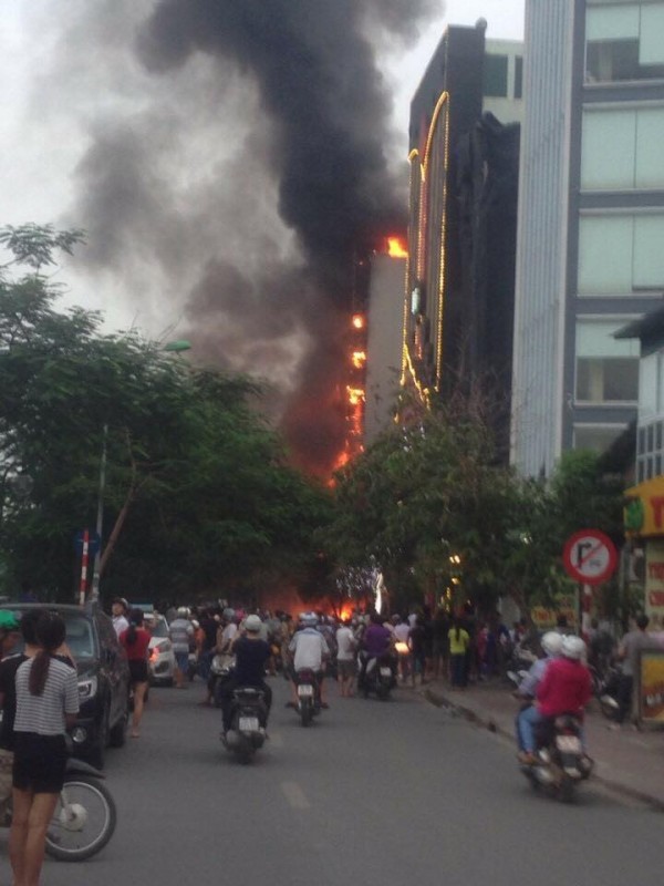 HOANHAP.VN - Vào khoảng 17h45 ngày 17/9, quán Karaoke Gold, 85G Nguyễn Khang (Cầu Giấy, Hà Nội) đã xảy ra một vụ cháy lớn, khi vụ cháy xảy ra trong quán vẫn còn hơn 20 người. Sau hơn 3 giờ, các lực lượng mới khống chế được ngọn lửa phát ra từ tòa nhà cao 8 tầng.