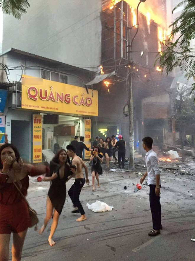 | Khách hàng hoảng sợ chạy ra khỏi đám cháy (Nguồn:FB) |