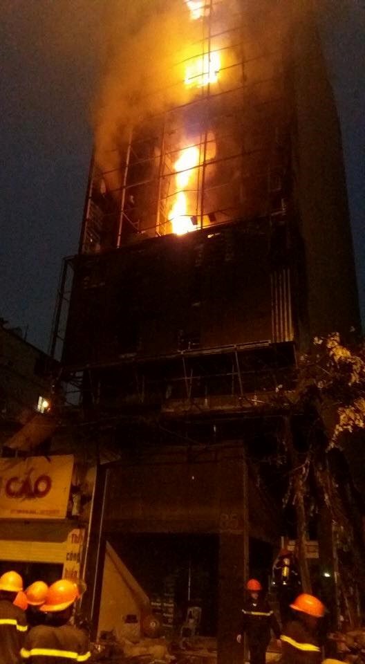 Lúc 21h25 (sau hơn 3 giờ xảy ra cháy), toàn bộ mặt tiền và bên trong các tầng ở quán hát cháy rụi. Phía ngoài ban công 8 tầng chỉ còn trơ khung sắt.