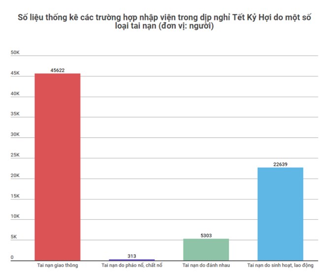 Trong 8 ngày nghỉ dịp Tết (từ sáng ngày 28 Tết đến Mùng 6 Tết), có 5.303 ca cấp cứu tai nạn do đánh nhau, chiếm 1,7% trong tổng số cấp cứu của các bệnh viện, 58% trong số đó (3.095 ca) phải nhập viện điều trị/theo dõi và đã có 15 trường hợp tử vong.