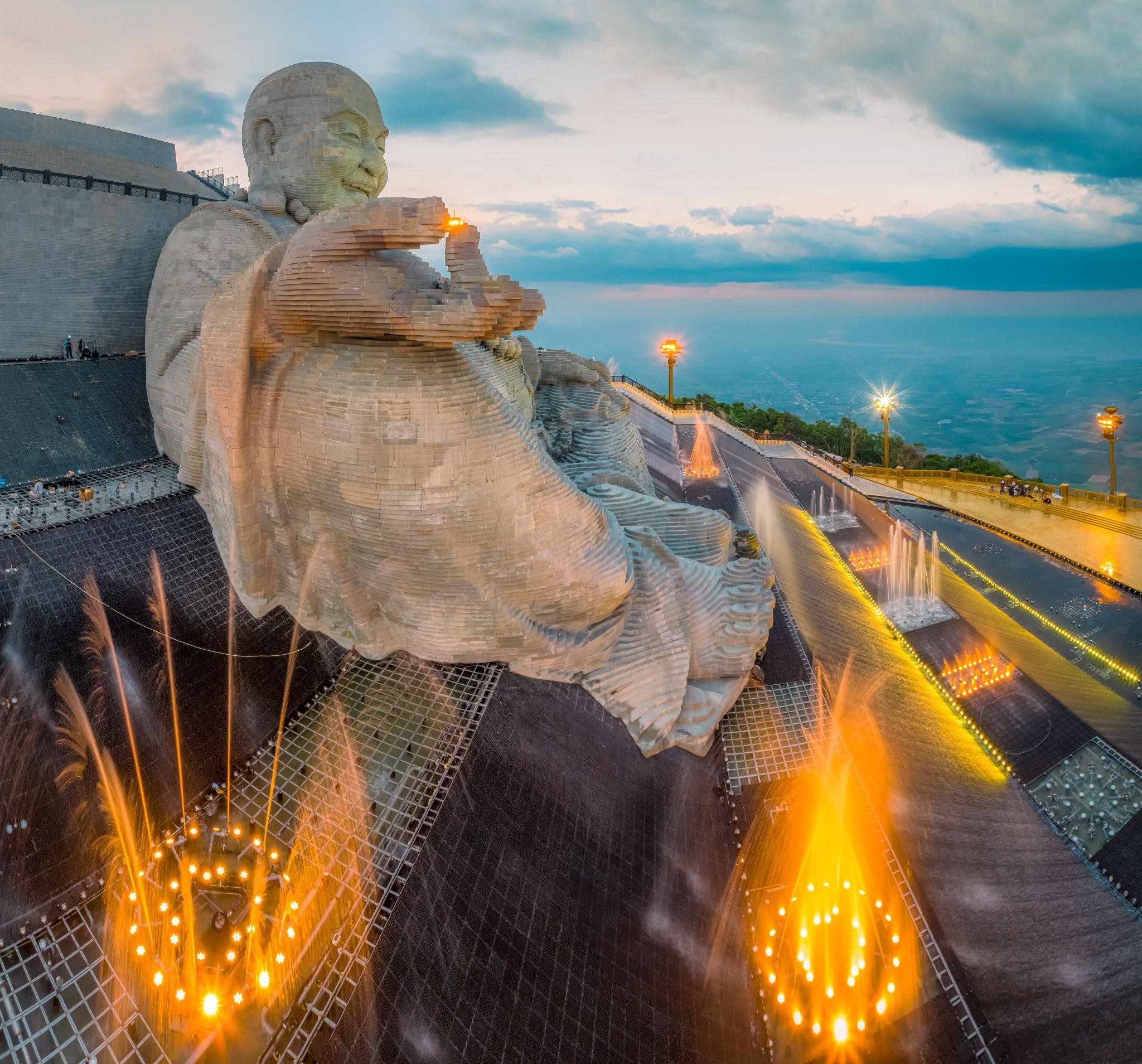 Tọa lạc tại độ cao 900m trên đỉnh núi Bà Đen, Tôn tượng Bồ Tát Di Lặc khổng lồ có chiều cao 36 mét, chiều rộng lớn nhất 45m, diện tích bề mặt tượng 4.651m2, nặng 5.112 tấn. Tôn tượng được tạo hình theo một phương thức đặc biệt chưa từng có tại Việt Nam: ghép từ 6.688 viên đá sa thạch tự nhiên theo cảm hứng ruộng bậc thang. So với những bức tượng Bồ Tát Di Lặc lớn nhất trên thế giới được kiến tạo từ đá, cả về chiều cao và trọng lượng, Tôn tượng Bồ Tát Di Lặc tại Núi Bà Đen là bức tượng Bồ Tát Di Lặc bằng đá sa thạch lớn bậc nhất thế giới.