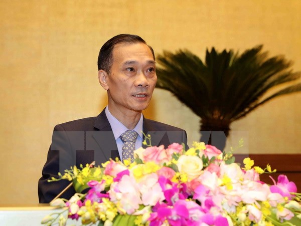 Chủ nhiệm Ủy ban Kinh tế của Quốc hội Vũ Hồng Thanh trình bày Báo cáo giải trình, tiếp thu và chỉnh lý dự thảo Luật Quy hoạch. (Ảnh: Phương Hoa/TTXVN)
