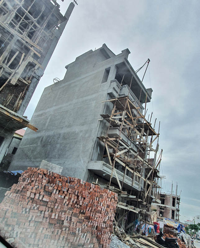 | Nhiều công trình đang có dấu hiệu được mở rộng tum thang, xây tường bao quanh phần diện tích tầng trên cùng. |