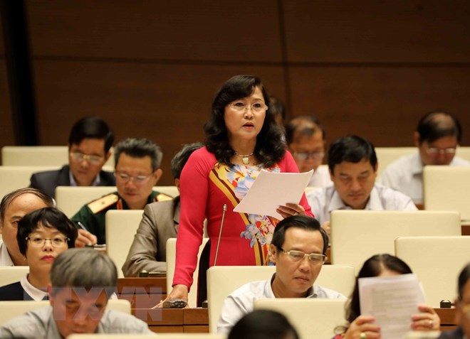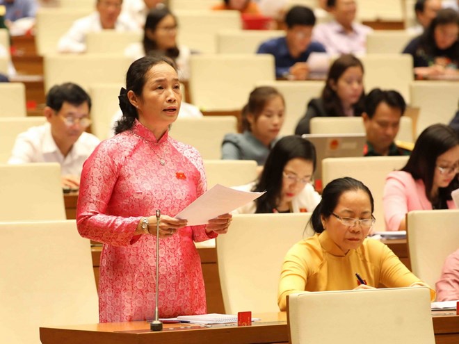 | Đại biểu Quốc hội tỉnh Kiên Giang Nguyễn Thị Kim Bé phát biểu. (Ảnh: Phương Hoa/TTXVN) |