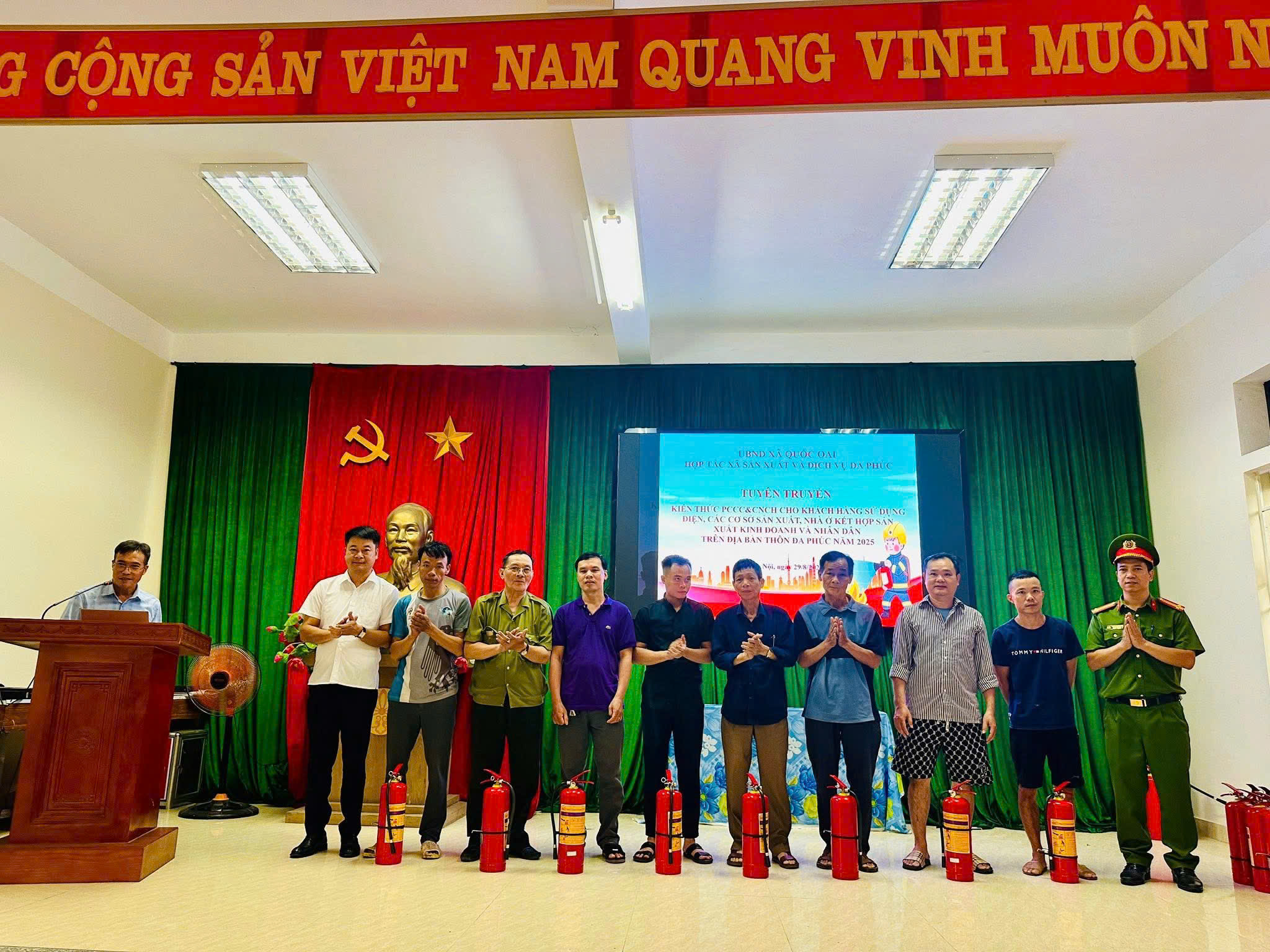 Ngày 29/8/2025 , Hợp tác xã Đa Phúc đã phối hợp cùng Công an xã Quốc Oai tổ chức cnăm 2025. Sự kiện diễn ra trong không khí trang trọng, vui tươi, đầy hào hứng và nhận được sự quan tâm, hưởng ứng nhiệt tình của đông đảo cán bộ, xã viên, đoàn thể cùng bà con nhân dân địa phương. Đây không chỉ là một buổi tập huấn nghiệp vụ đơn thuần, mà còn là dịp để lan tỏa tinh thần trách nhiệm, nâng cao nhận thức về công tác PCCC – một nhiệm vụ quan trọng, gắn liền với an toàn tính mạng và tài sản của cộng đồng. Nội dung tập huấn thiết thực, sinh động
