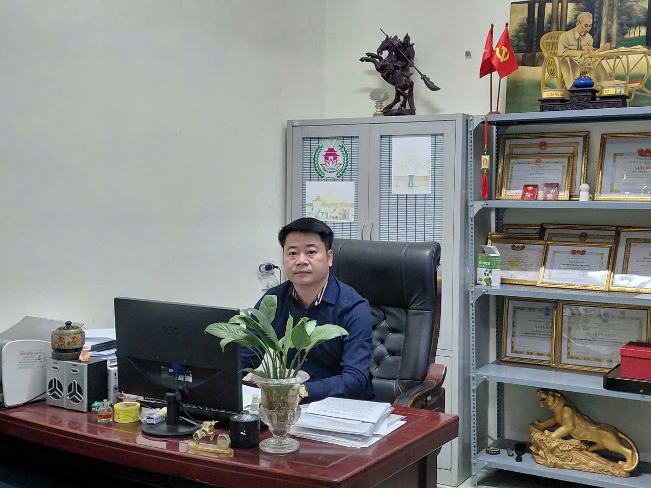 Ông Nguyễn Văn Hưng – Giám đốc HTX Sản xuất và Dịch vụ Đa Phúc tại văn phòng điều hành với hệ thống bằng khen, giấy khen ghi nhận những nỗ lực trong việc bảo tồn và phát triển nghề truyền thống.