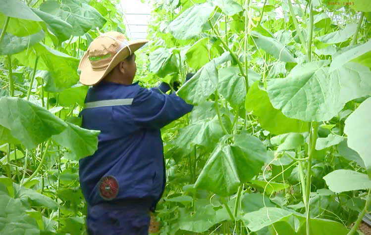 Nông dân kiểm tra, chăm sóc cây trồng của HTX tại vùng sản xuất “đa canh, đa cây” mang lại nguồn thu nhập cao - Ảnh: Cơ sở cung cấp