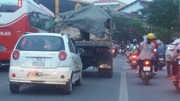 Theo quan sát của Báo Công an Thành Phố Hồ Chí Minh: Chiếc xe tải mang BKS: 75K.1247 chở hàng chục tảng đá đậu trên đường Nguyễn Thị Minh Khai vào lúc 17h00 lưu thông qua tuyến đường Tôn Đức Thắng - Lê Quý Đôn – Bà Triệu – Phạm Văn Đồng, trên xe chở những tảng,đá loại lớn mà không hề có phương tiện bảo vệ như thùng chắn, xích giữ,...