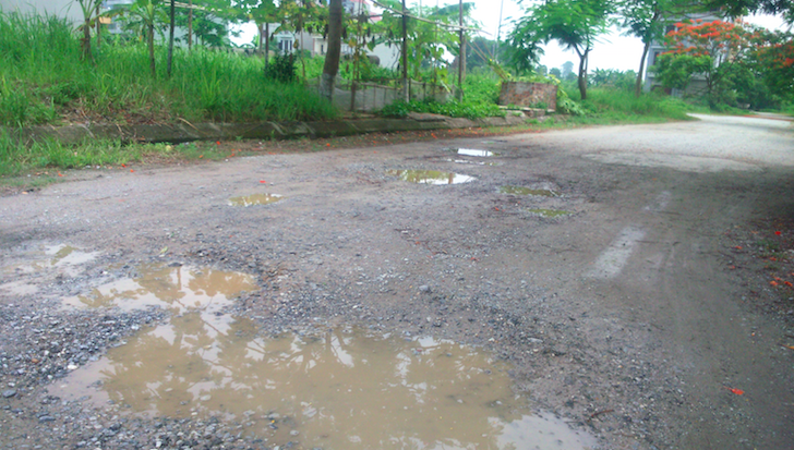 | Đường xá trong KĐT Phố Nối 10 năm vẫn nham nhở đá cấp phối, thành thùng thành vũng |