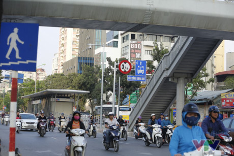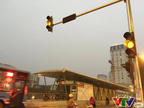 | Đèn tín hiệu giao thông, có nút bấm giúp hành khách sang nhà chờ từ hai bên đường |