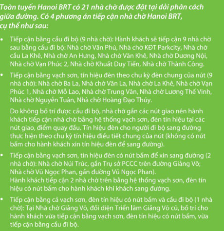 Ban quản lý dự án xe bus nhanh Hà Nội BRT đã đưa ra bản hướng dẫn chi tiết cách tiếp cận nhà chờ, mua vé, sử dụng bus nhanh làm phương tiện giao thông công cộng.