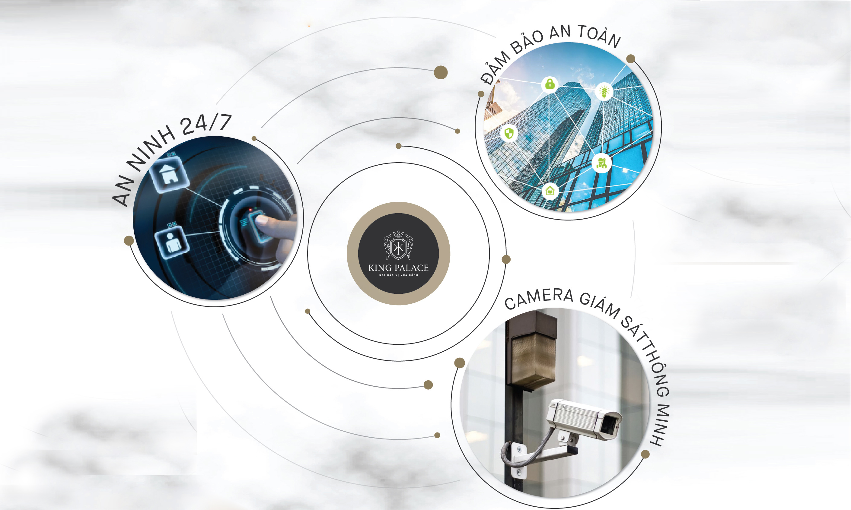Ngoài ra, hệ thống an ninh của King Palace còn sở hữu các tính năng hiếm có đối với các tổ hợp căn hộ cao cấp tại Việt Nam. Vấn đề an ninh, an toàn của cư dân được kiểm soát bởi hệ thống CCTV IP, thẻ từ được áp dụng cho từng căn hộ và định danh cho việc sử dụng thang máy. Bảo vệ và lễ tân thường trực 24/7, thêm vào đó là hệ thống video phone IP quản lý an ninh và đảm bảo quyền riêng tư cho toàn bộ cư dân.