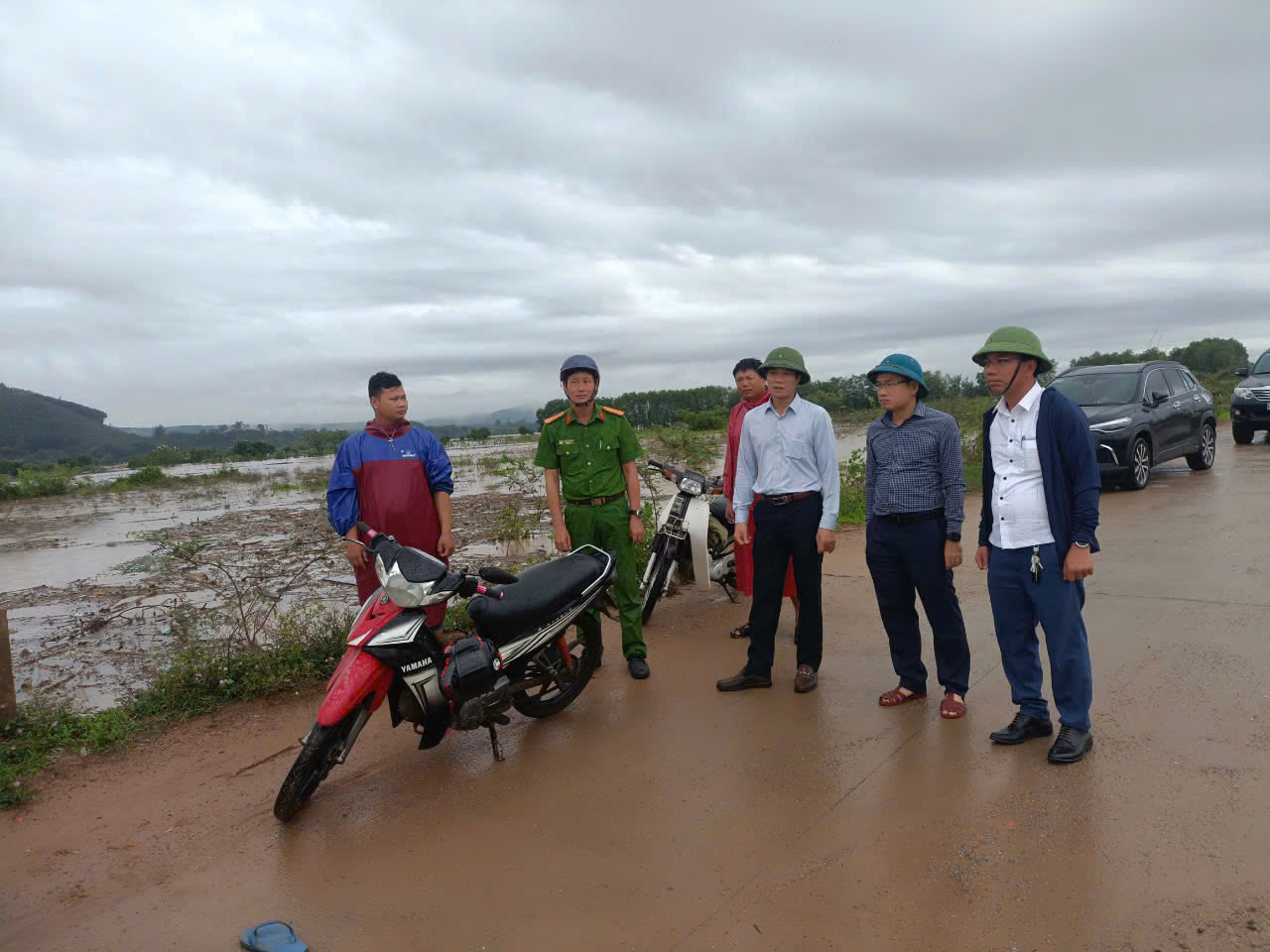 Chủ tịch UBND huyện Bố Trạch ông Hoàng Minh Thái kiểm tra tình hình ngập lụt tại xã Cự Nẫm