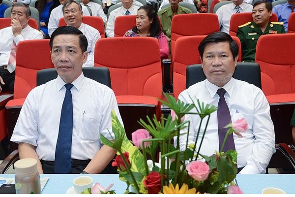 Ông Lưu Tài Đoàn, Ủy viên Ban Thường vụ Tỉnh ủy, Trưởng Ban Tổ chức Tỉnh ủy (bên trái) và ông Nguyễn Văn Xinh, Ủy viên Ban Thường vụ Tỉnh ủy, Trưởng Ban Tuyên giáo Tỉnh ủy (bên phải) tham dự họp mặt.