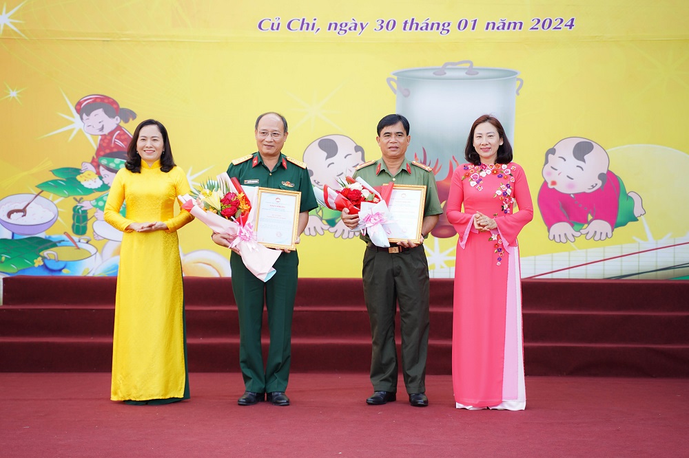Lãnh đạo huyện Củ Chi trao thư cảm ơn đến đại diện lãnh đạo Bộ Tư lệnh Thành phố và Công an TP Hồ Chí Minh.