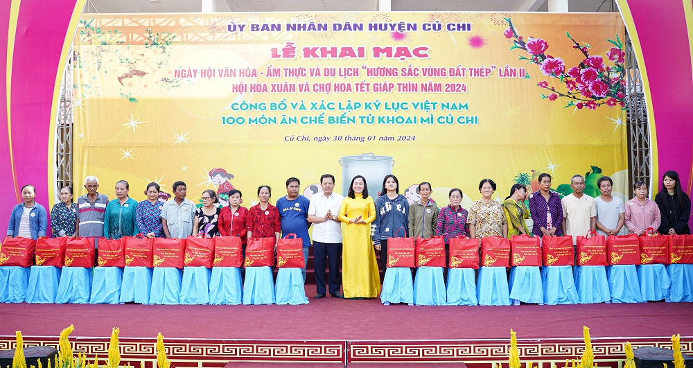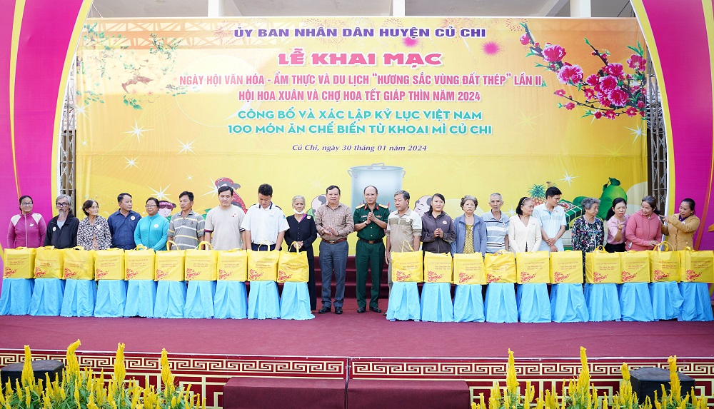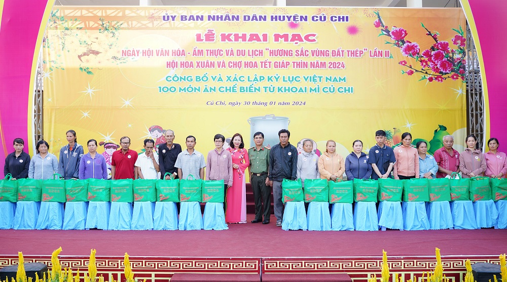 Nhân dịp này, UBND huyện Củ Chi đã trao quà Tết cho 60 hộ dân có hoàn cảnh khó khăn. Đồng thời công bố và trao tặng Giấy chứng nhận cho 19 chủ thể có sản phẩm đạt chứng nhận sản phẩm OCOP “3 sao” năm 2023.