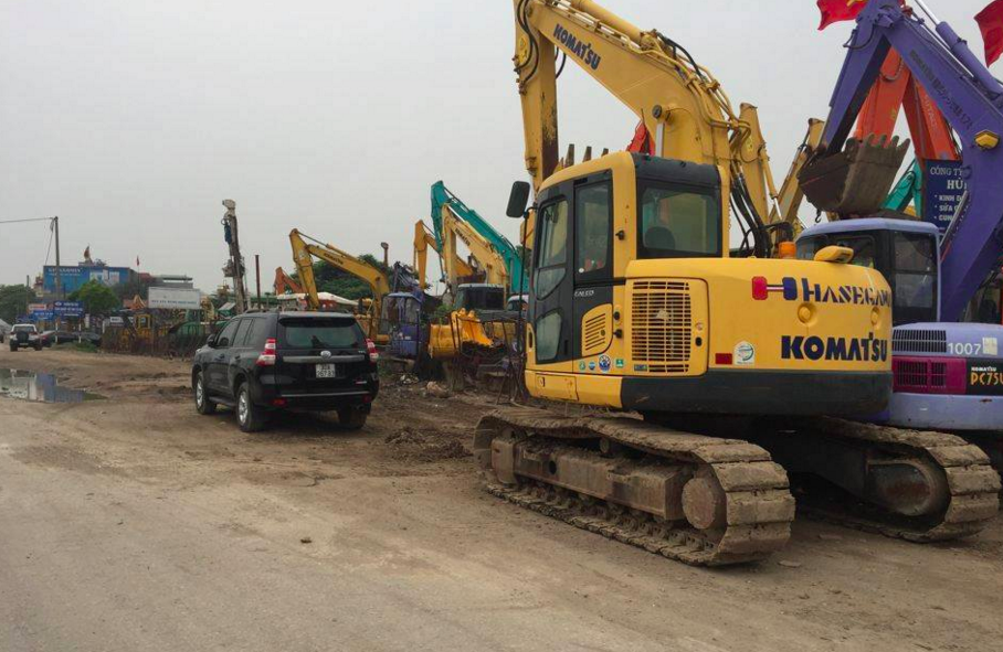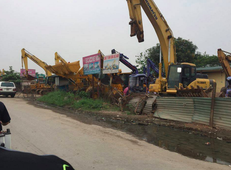 | Các bãi tập kết, buôn bán máy móc trên hành lang QL5 gây mất trật tự an toàn giao thông |