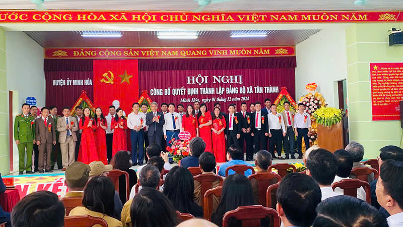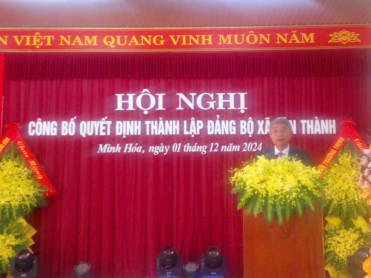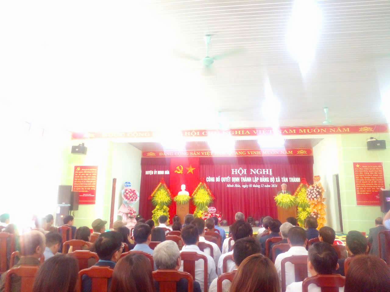 Tại hội nghị, các đại biểu đã nghe, trưởng ban tổ chức huyện uỷ, ông Cao Thanh Hải công bố các quyết định thành lập Đảng bộ xã Tân Thành trên cơ sở sáp nhập xã Hóa Phúc, Hóa Thanh và Hóa Tiến.