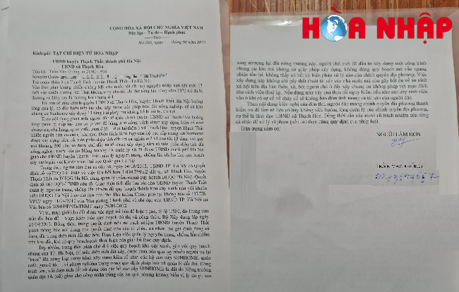 Sau khi nghiên nội dung phản ánh, căn cứ khoản 2, Điều 12 (Trách nhiệm của cơ quan báo chí đối với quyền tự do báo chí, quyền tự do ngôn luận trên báo chí của công dân) Luật Báo chí số 103/2016/QH13, được Quốc hội thông qua ngày 05/04/2016 và các văn bản hướng dẫn, ngày 31/8/2022, Tạp chí điện tử Hòa nhập có công văn số 57/CV-ĐTHN kính chuyển tới UBND huyện Thạch Thất, thành phố Hà Nội để kiểm tra, giải quyết theo thẩm quyền và thông báo kết quả tới toà soạn. Tuy nhiên, đến nay, tòa soạn vẫn chưa nhận được phản hồi của UBND huyện Thạch Thất.