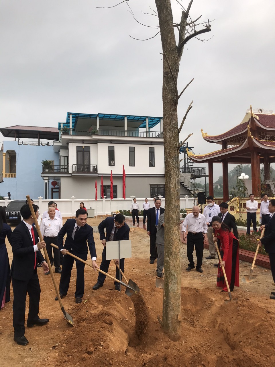 Lãnh đạo tỉnh Tuyên Quang và lãnh đạo huyện Na Hang trồng cây lưu niệm tại công trình Bia lưu niệm Chi bộ Đảng Na Hang (1947 -2022).