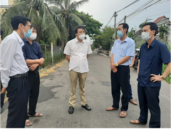 Đồng chí Phạm Quốc Ka - Bí thư huyện ủy Vĩnh Bảo (áo trắng đứng giữa) đi kiểm tra công tác phòng chống dịch tại Thị trấn Vĩnh Bảo.