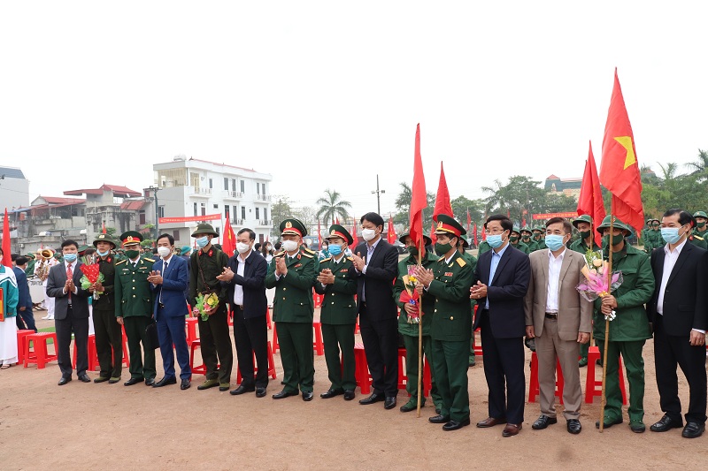 Trước giờ giao quân, tiễn đưa các thanh niên lên đường nhập ngũ, các đồng chí lãnh đạo trong Đoàn chủ tịch đã tặng hoa, động viên và gửi gắm tình cảm, sự quan tâm, tin tưởng của cấp ủy đảng, chính quyền và nhân dân huyện nhà vào những thành tích rèn luyện phấn đấu của các tân binh trong môi trường quân ngũ. Với sự chuẩn bị chu đáo về mọi mặt, Lễ giao nhận quân năm 2021 của huyện Ý Yên đã diễn ra trang trọng, ngắn gọn, ý nghĩa và đảm bảo an toàn tuân thủ tuyệt đối công tác phòng chống dịch Covid-19.